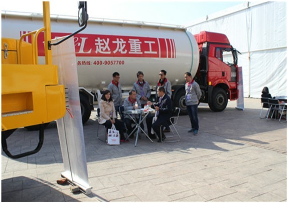 2013年11月19日,首屆中國義烏國際裝備制造業(yè)博覽會在義烏隆重開幕,逐漸發(fā)展壯大的趙龍重工,以600平米的參展面積、6臺高品質(zhì)精品展車備受參展觀眾關(guān)注。本次參展車型有12方和16方混凝土攪拌車各1輛、粉粒物料運(yùn)輸車和半掛粉粒物料運(yùn)輸車各1輛、礦用自卸車2輛。展會期間,大氣的展車排布引來了許多參展人員前來觀賞,并贏得了廣泛的好評。